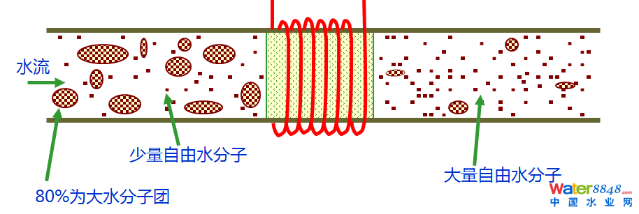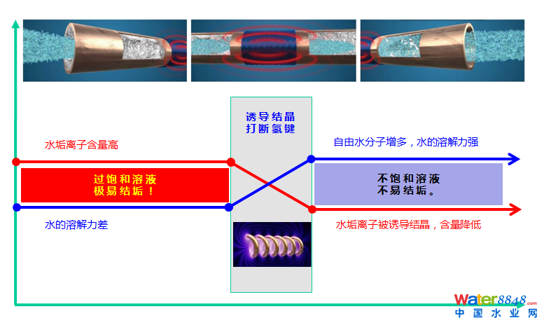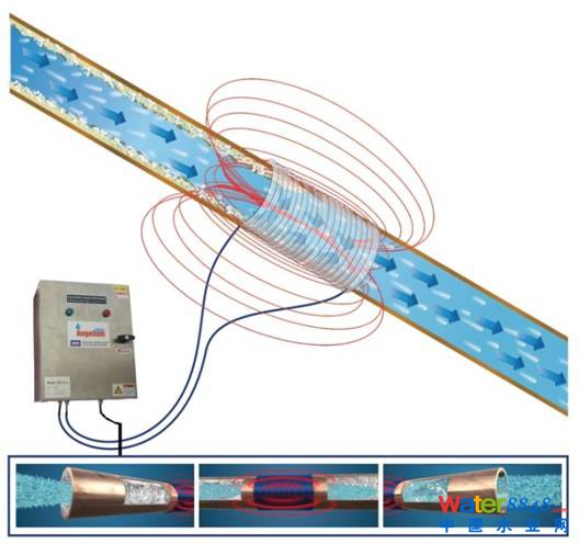 在調(diào)頻磁場(chǎng)的影響下,離子頻繁碰撞結(jié)晶,碳酸鈣晶體長(zhǎng)大,這種晶體表面不帶電荷,性質(zhì)穩(wěn)定,不會(huì)粘附在管壁上;