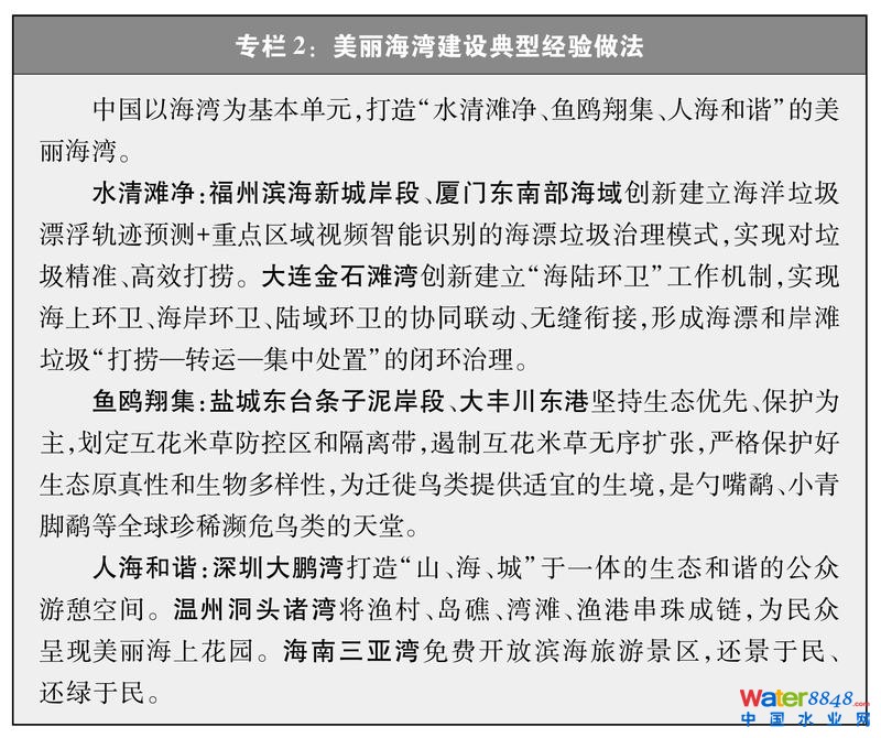 多措并舉建設(shè)美麗海灣。制定美麗海灣建設(shè)的基本標(biāo)準(zhǔn),以海灣環(huán)境質(zhì)量良好、海洋生態(tài)系統(tǒng)健康、人海關(guān)系和諧共生為導(dǎo)向,設(shè)置五類指標(biāo),指導(dǎo)各地開展美麗海灣建設(shè),鼓勵因地制宜增設(shè)特色指標(biāo)。建立美麗海灣建設(shè)管理平臺,利用現(xiàn)場調(diào)查和遙感監(jiān)測等手段,跟蹤評估進(jìn)展,推動實(shí)現(xiàn)美麗海灣建設(shè)情況智慧監(jiān)管,督促推動各級政府因地制宜開展海灣綜合治理,落實(shí)建設(shè)任務(wù)。建立多元投融資機(jī)制,強(qiáng)化政府引導(dǎo),鼓勵經(jīng)營主體、社會資本參與美麗海灣建設(shè)。綜合運(yùn)用財政投入、專項(xiàng)債、生態(tài)環(huán)境導(dǎo)向開發(fā)(EOD)項(xiàng)目等財政金融手段,加快推進(jìn)美麗海灣建設(shè)項(xiàng)目落地。加強(qiáng)美麗海灣建設(shè)示范引領(lǐng),鼓勵美麗海灣建設(shè)制度機(jī)制和關(guān)鍵技術(shù)創(chuàng)新,開展優(yōu)秀案例遴選,推廣示范經(jīng)驗(yàn)?zāi)J,引領(lǐng)提升美麗海灣建設(shè)總體水平。目前,已遴選兩批20個國家級美麗海灣優(yōu)秀案例。