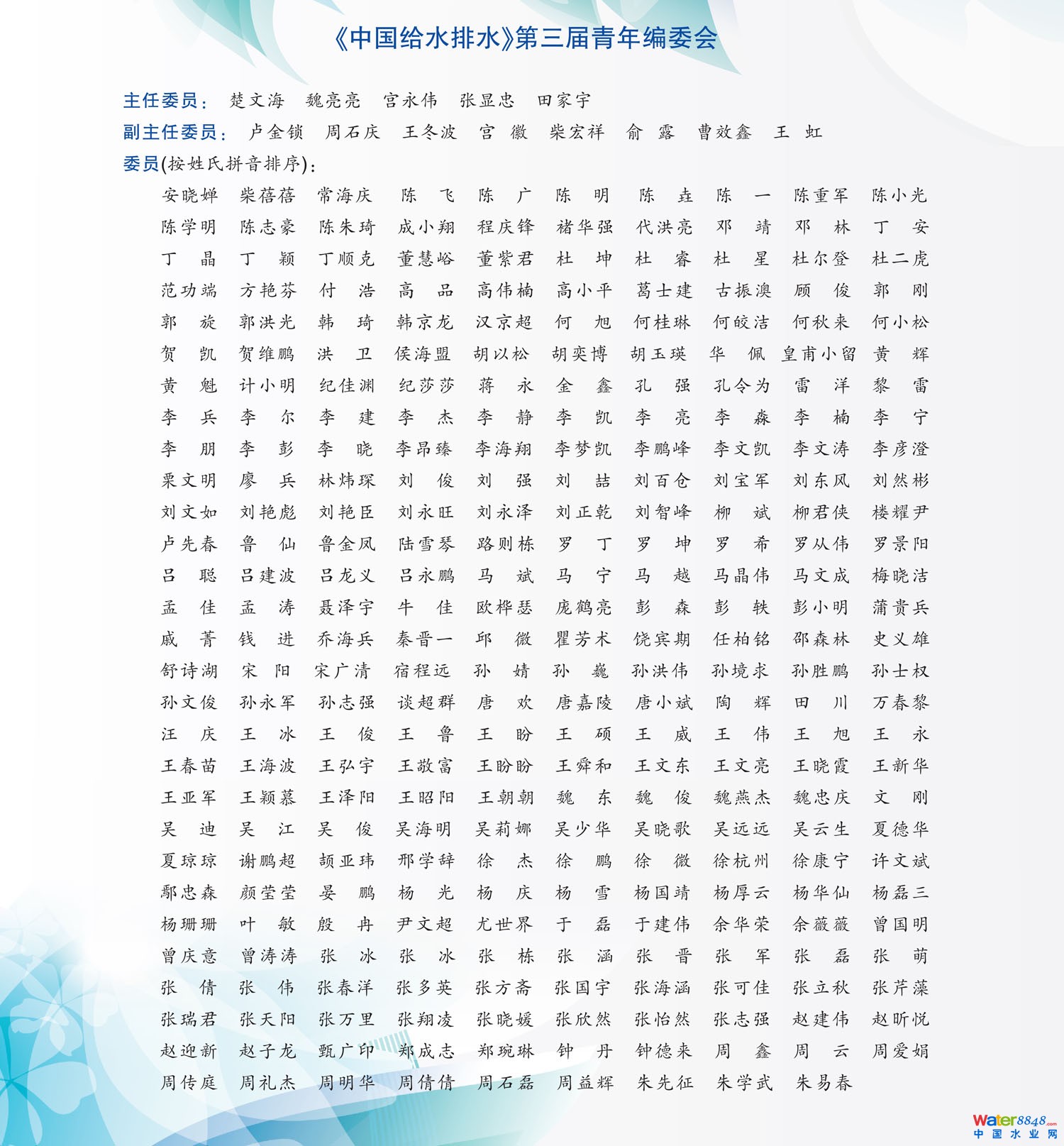 8、彭永臻 9、馬軍 10、季民、李激、赫俊國、李軍(北工大)、李軍(浙工大)、董文藝、李金河、陳曉華、張曉健、陳同斌 、傅大放、黃志彬(臺(tái)灣)